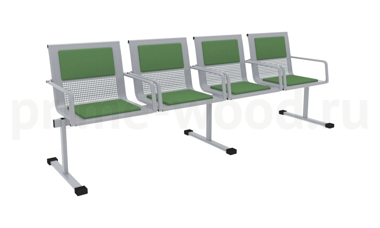 мод.СМ 88/5-04 с дополнительной стойкой металлический каркас – труба 50х50, 50х25, перфор. сиденья с накладками, 8 подлокотников. Цвет металлокаркаса - черный.