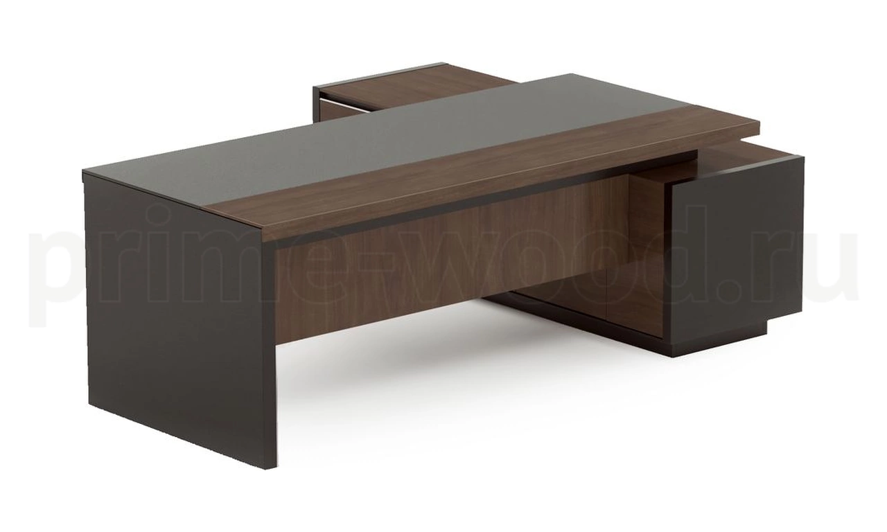 Стол руководителя, на опорной сервисной тумбе, левый.